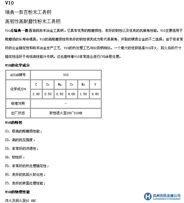 蘇州浩凱V10高速鋼物流配送運(yùn)輸?shù)貐^(qū):北京,上海,重慶,天津,江蘇南京_徐州_蘇州_無(wú)錫_昆山_揚(yáng)州,太倉(cāng)_吳江_連云港_泰州_鹽城_鎮(zhèn)江_南通_常熟_常州_張家港,浙江溫州,杭州,寧波寧海_余姚_臺(tái)州黃巖_金華_紹興_嘉興,福建福州_廈門,廣西南寧_柳州,安徽合肥_安慶_蚌埠_巢湖_淮安_蕪湖_淮南_黃山_滁州_宣城,山東濟(jì)南_青島_日照_濱州_煙臺(tái)_威海_濟(jì)寧_聊城_臨沂_淄博,湖南長(zhǎng)沙,重慶,河北石家莊,河南鄭州_洛陽(yáng)_開(kāi)封,湖北武漢,江西南昌,陜西西安,山西太原及云南昆明。歡迎各地模具廠商來(lái)電垂詢V10高速鋼價(jià)格和V10高速鋼熱處理機(jī)加工事宜。目前我司V10高速鋼現(xiàn)貨庫(kù)存表統(tǒng)計(jì)數(shù)量為03噸。