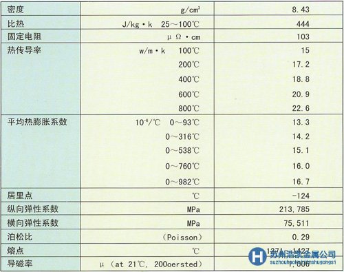 鎳合金性能用途、密度硬度和化學(xué)成分: