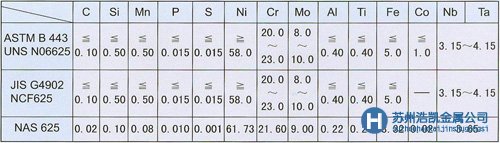 對應規格 ASTM B 443/UNS N06625 ASME SB 443/UNS N06625 JlS G4902/NCF625
