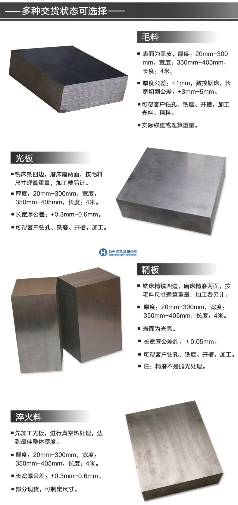 因業(yè)務較忙及鋼材價格波動,詢價和詢問鋼材規(guī)格的客戶請傳真至:0512-65788809 幾分鐘后,業(yè)務經(jīng)理會與您取得聯(lián)系。買模具鋼,認準蘇州浩凱,優(yōu)質(zhì)優(yōu)價,互惠互利,信譽卓越!