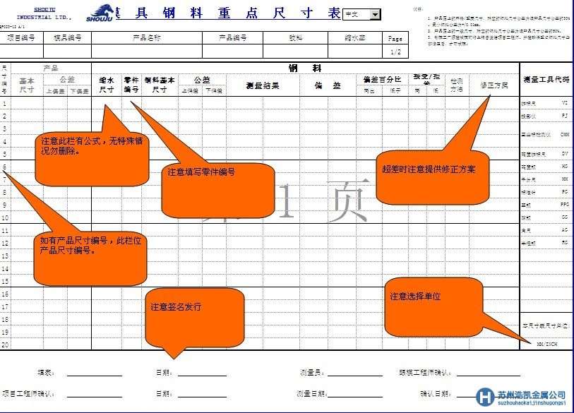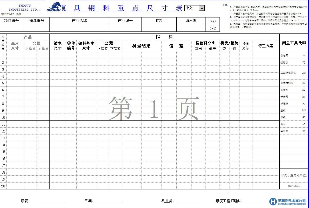 QP023-12-A1_模具鋼材料 QP023-12-A1重點尺寸控制表